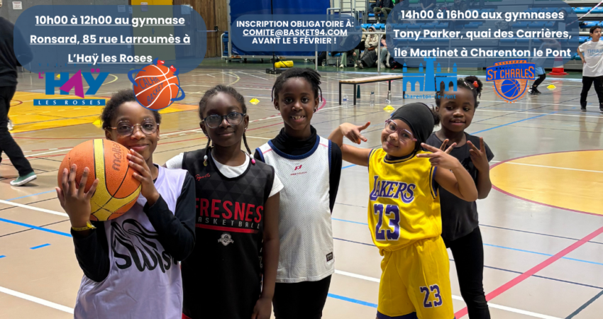 Rendez-vous le samedi 7 février pour les plateaux U9 👶 📍 10h00 – 12h00Gymnase Ronsard85 rue Larroumès – L’Haÿ-les-Roses 📍 📍 14h00 – 16h00Gymnases Tony ParkerQuai des Carrières – Île Martinet – Charenton-le-Pont📍 📩 Inscription obligatoire avant le 5 février👉…