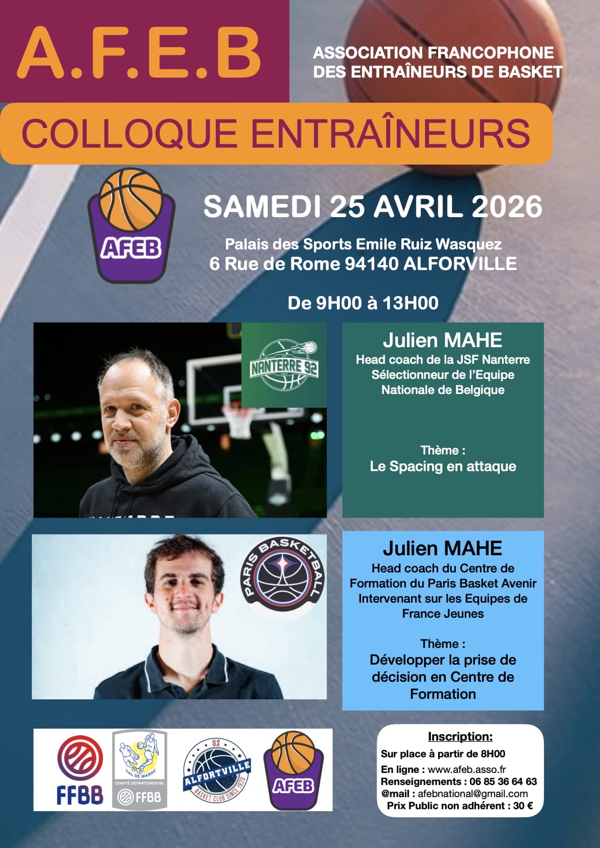 L’Association Francophone des Entraîneurs de Basket (AFEB) organise son Colloque Entraîneurs ce samedi 25 avril 2026, de 9h à 13h 📈